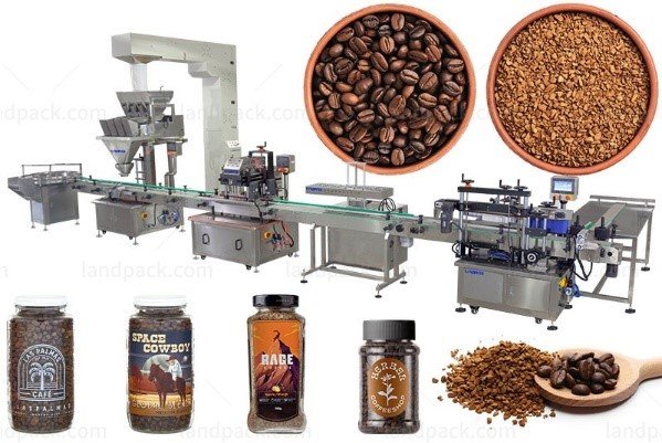 آلة تعبئة وتغليف وتسمية زجاجات حبيبات حبوب القهوة الأوتوماتيكية المربعة المستديرة Coffee Filling