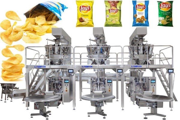 خط تعبئة وتغليف رقائق البطاطس وحبيبات الفشار الأوتوماتيكية ذات الوزن العمودي