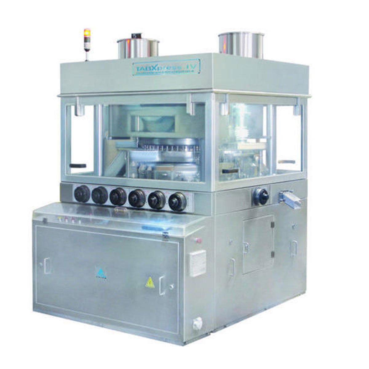 - TabXpress-IV عبارة عن مكبس أقراص مزدوج الجوانب عالي السرعة مزود بمحرك تروس داخلي وضغط مسبق ومناسب لإنتاج دفعة متوسطة الحجم